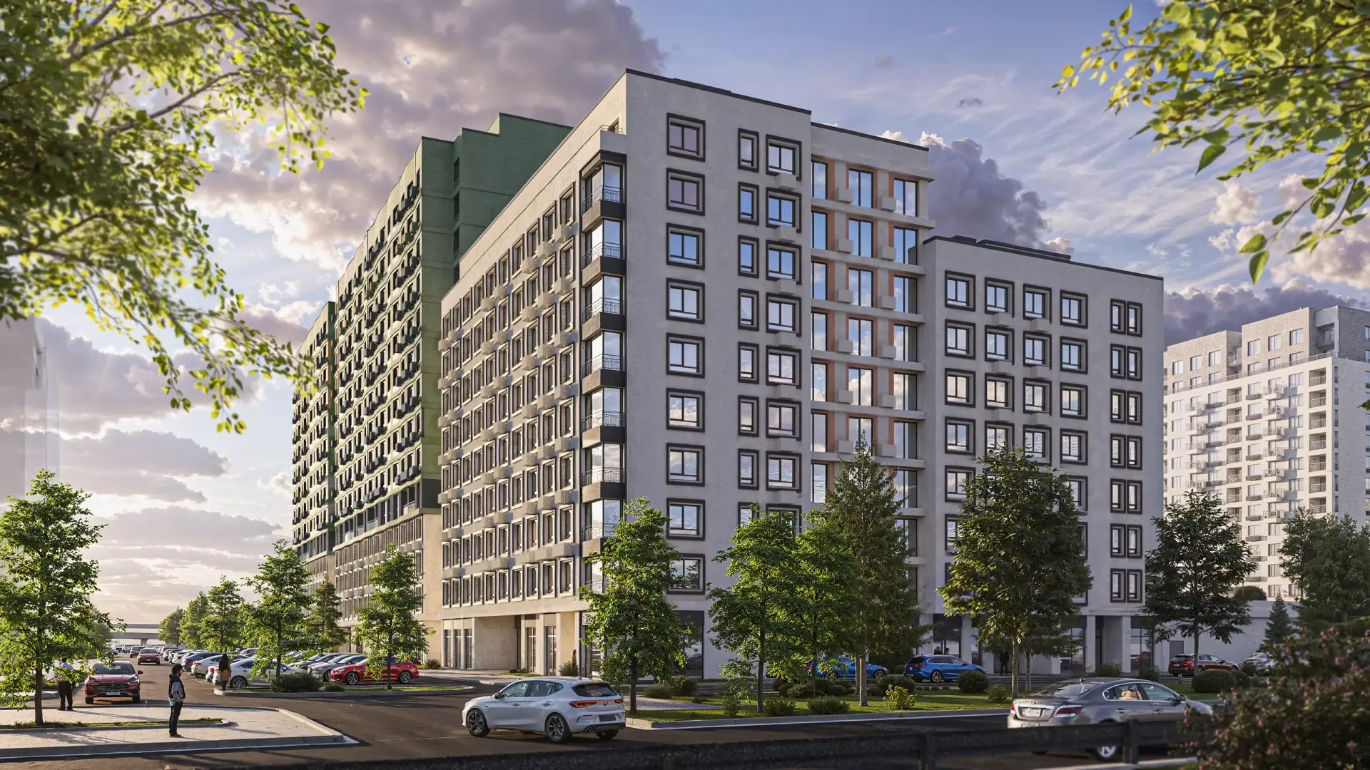 Оригинальный дизайн фасадов, гармоничное сочетание ярких оттенков с нейтральными тонами формируют неповторимый облик жилого комплекса. Использование разнообразных архитектурных приёмов для визуального разделения больших поверхностей на более мелкие элементы и их гармоничное взаимодействие с окружающей городской средой создают визуально комфортное пространство, способствующее психологическому благополучию жителей.