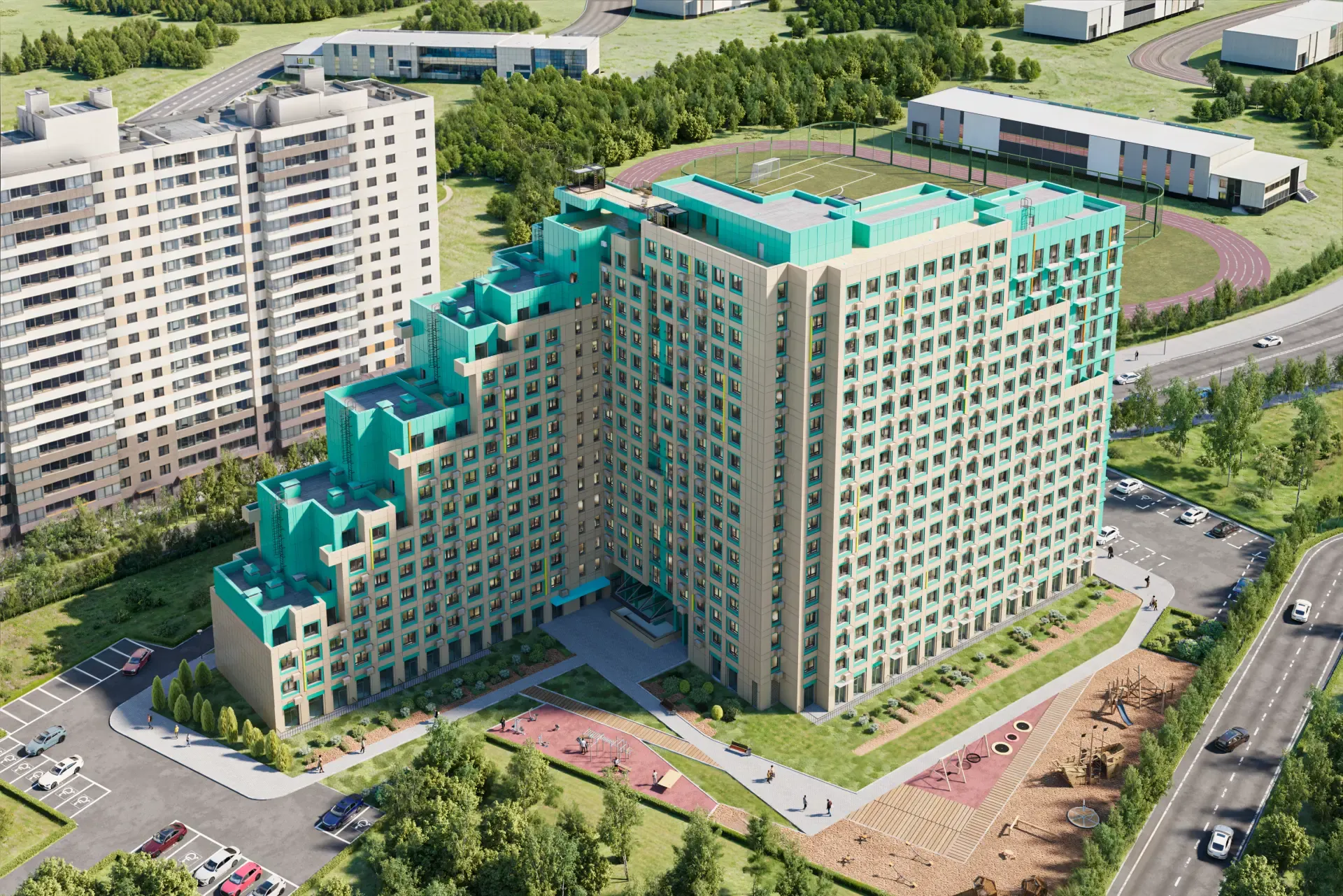 Архитекторы «Миторры» предложили нестандартную конфигурацию здания, которая представляет собой зигзаг с открытым арочным пространством в центральной части. Сложный разновысотный объём не только создаёт эффектный каскадный силуэт, но и позволяет внедрить нестандартные планировки квартир с частными террасами, обеспечить улучшенную инсоляцию помещений, не затемняя при этом соседние строения.