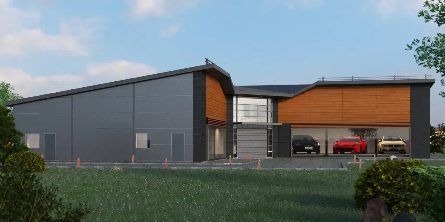 В соответствии с техзаданием Заказчика, в центре здания выполнена двухэтажная комната отдыха с помещениями оружейного сейфа. Основное пространство отдано под парковочные места, предусмотрены технические помещения и помещения охраны.
