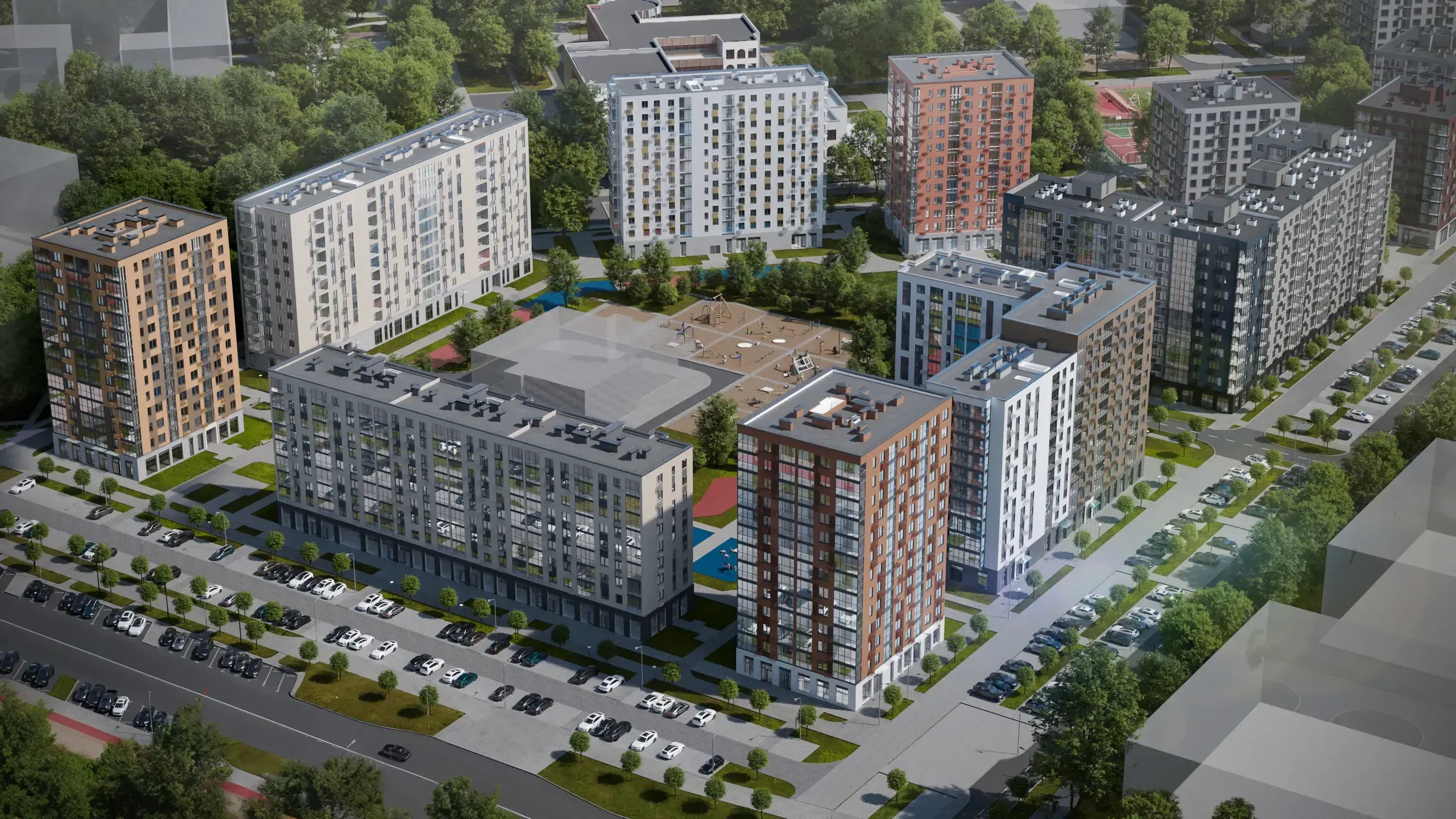 Архитектура жилого комплекса задумана в скандинавском стиле, отделка фасадов выполнена штукатуркой и клинкерным кирпичом. Комфортная средне-этажная застройка - от 9 до 13 этажей, благоустроенные дворы, качественная отделка мест общего пользования, безбарьерная среда, наличие колясочных и пунктов для мойки лап домашних питомцев сделают жизнь в новом районе максимально удобной.